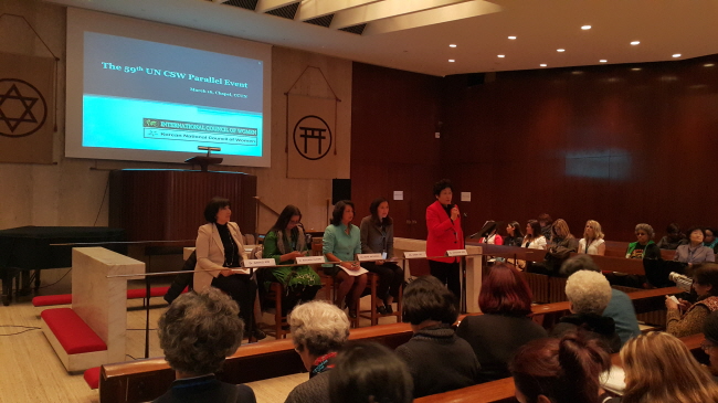 매년 UN CSW에 참가하여 NGO 워크숍을 진행해 온 한국여성단체협의회는 3월 16일 유엔 Church 센터에서 “정치경제사회적 권리를 위한 여성의 역량강화: 베이징+20 이후 여성의 지속 가능한 발전을 위한 전략 (Empowering Women for Political, Economic and Social Rights: Strategies for Continued Progress of Women after Beijing+20)”을 주제로 포럼을 개최하였다.