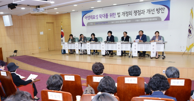 제20대 국회의원 선거가 1년도 채 남지 않은 가운데 정치관계법 개정 논의가 활발하게 진행 중인 상황에서 한국여성단체협의회는 지역구 후보자 30% 여성공천 의무화 등 관련 법 개정을 위한 대국회 건의문을 포럼에서 발표하고 여성의 정치참여 확대를 위한 보다 실효성 있는 법제도개선 방안에 대하여 각계 전문가 의견을 수렴했다.