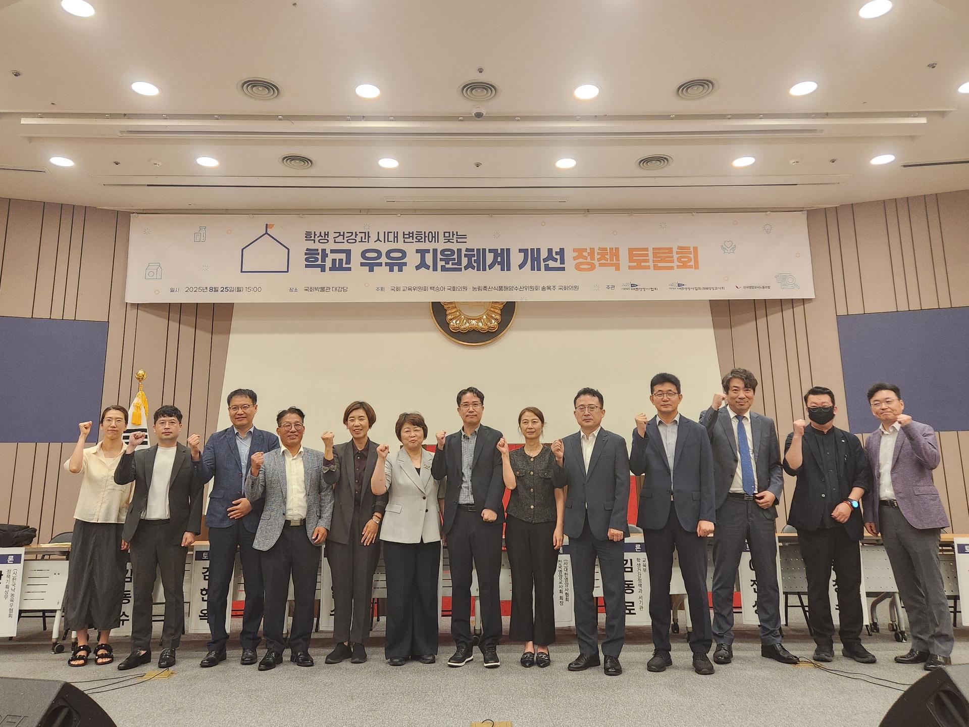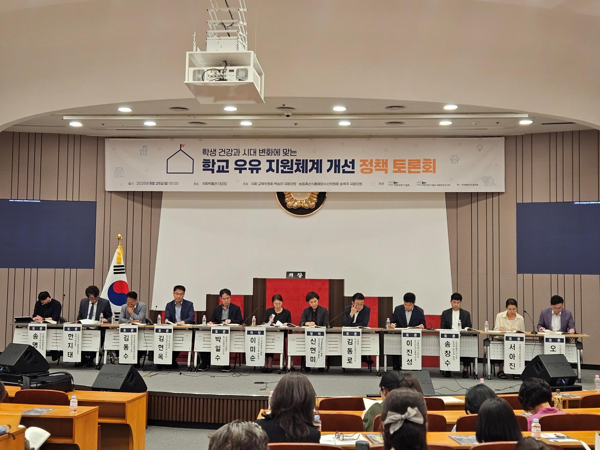 (사)대한영양사협회(회장 송진선)는 8월 25일(월), 국회박물관 대강당에서 「학생 건강과 시대 변화에 맞는 학교 우유 지원체계 개선」정책 토론회가 개최됐다고 밝혔다.